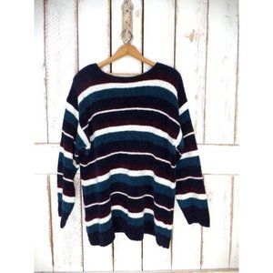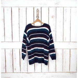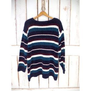 90s striped chunky chenille slouchy pullover sweater/vintage blanket sweater/minimalist