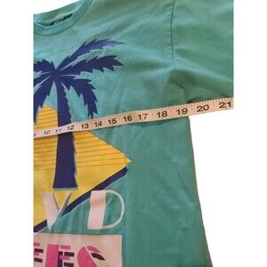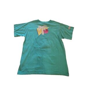 90s style BLVD Supply Teal Palm Tree Shirt with Desert Camo M Color block