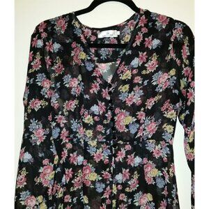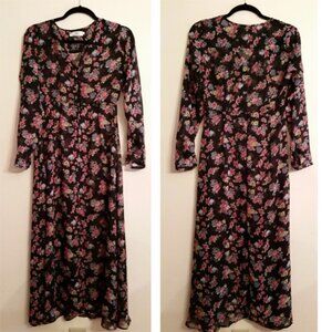 90's style boho-grunge floral maxi dress S semi sheer button front