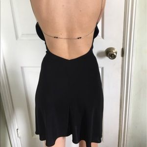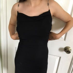 Vintage 90s dress in black with silver metal straps and a black bead (could be seen if you zoom in) open back. Perfect for a night out 💃🏻