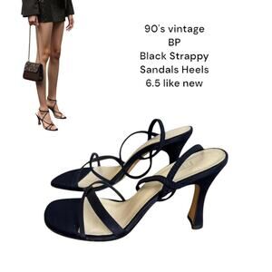 90's vintage BP Black Strappy Open Toe Heels Sandals size 6.5 like new.