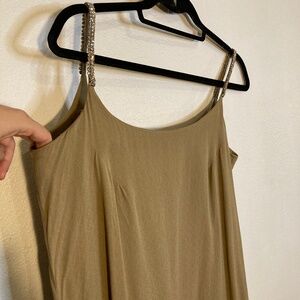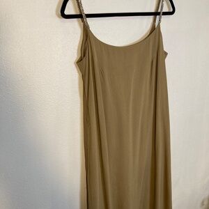 90s vintage Calvin Klein Nude Silk Rhinestone Embellished Strap Flowy Maxi Dress