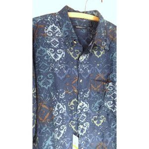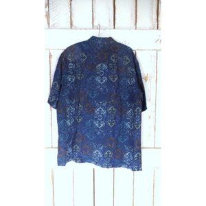 90's vintage Van Heusen dark blue linen button down short sleeve shirt/linen oxford shirt/mens button down/xlarge