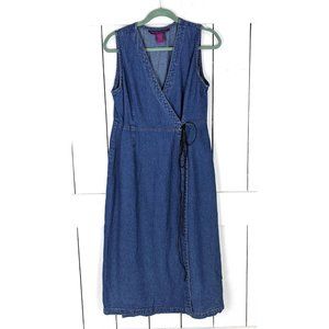 90s vintage blue cotton jean denim sleeveless long maxi wrap dress PM
