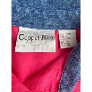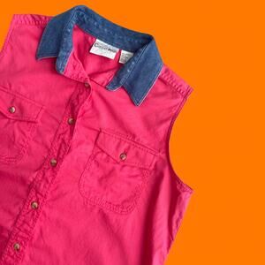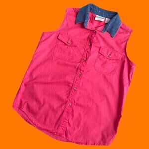 90's vintage pink 100% cotton denim collared sleeveless button up shirt LARGE