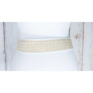 90s vintage white/tan wide straw patent leather belt/reptile embossed patent straw belt/small/32"-34"
