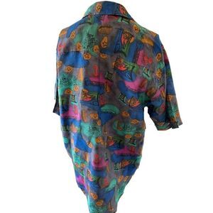 90s vintage rainbow button up nautical sailor ocean print short sleeve women’s M