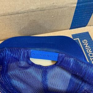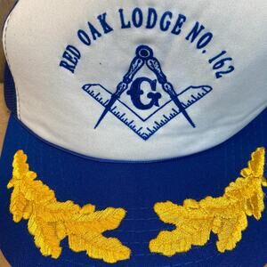 90s white and blue trucker hat. red oak lodge. compass. normal wer