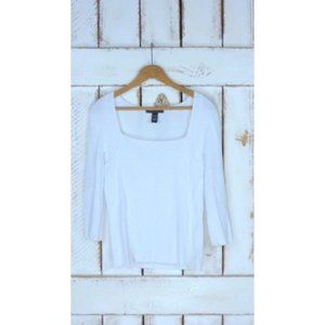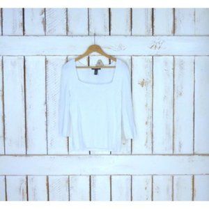 90s white fitted stretch ribbed pullover 3 quarter length sleeve top