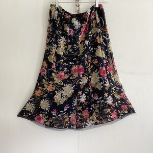 90s y2k Fairycore Gauze Lined Flowy Large Floral Print Maxi/Midi Skirt Size 8