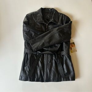 #KathyIreland #VintageLeatherJacket #90sFashion #NewWithTags #LeatherJacket #BikerJacket #TieBelt #GrungeStyle #VintageFashion