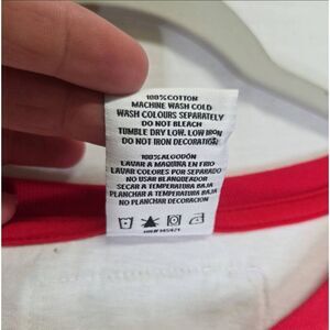 1990s Vintage Cross Colours Mens Hip Hop T Shirt in white with a red collar and sleve. And a navy sleeve. There is a shield on the t shirt, and a brand logo tag on the back. Excellent preowned condition. Ya dig?