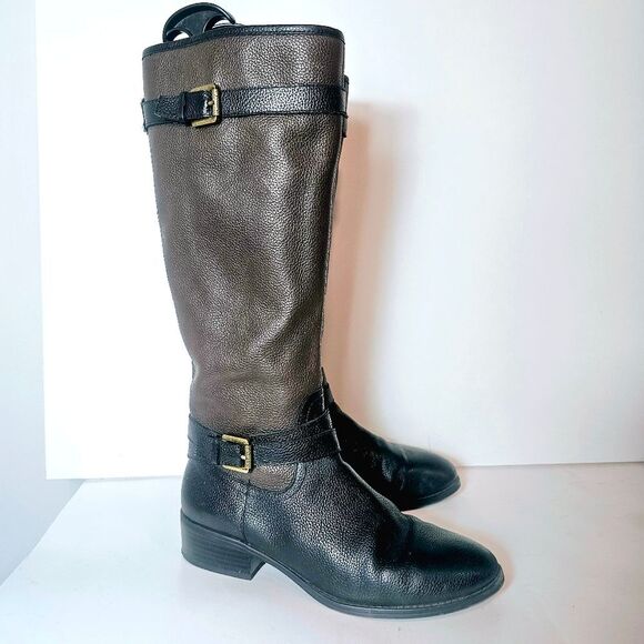 90s Lauren Ralph Lauren Mariella Pebbled Leather Two Tone Riding Boots Size 8