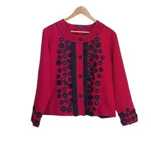 90's Notations Cotton Whimsical Art To Wear 3D Polka Dot Ladybug Blazer Red Sz L