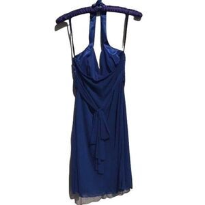 90's Roberta Dress Halter Slip Plunging V Empire Ruffle Raw Edge Mini Navy Sz S
