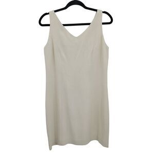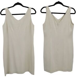 90's Tommy Bahama Mini Sheath Dress 8 Beige 100% Silk Capsule Sleeveless V-neck
