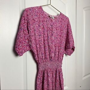 90s VTG Pink Patterned Gathered Waist Jumpsuit
