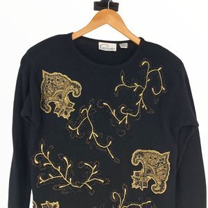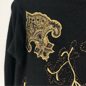 90’s Vintage Beaded Embroidered Lambswool Angora Long Sleeve Sweater size Small