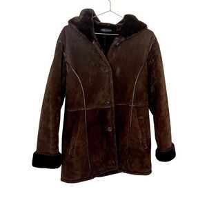 90’s Y2K Wilson's Leather Brown Penny Lane Coat Suede Faux Shearling Hood