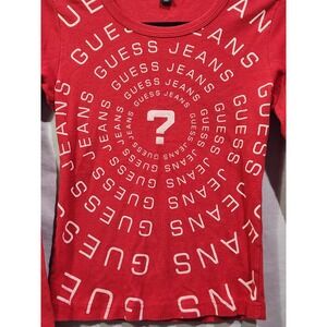 90s/Y2K/VTG Guess Jeans Spell Out Logo Longsleeved Red Shirt Med/Large Womens