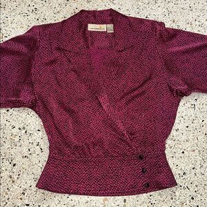 EUC vintage 90’s Liz Claiborne top blouse magenta pink black print small s see measurements