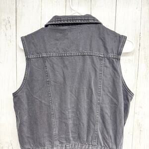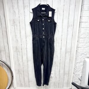 91 Cotton On Jumpsuit Women Size 6 Black Washed Denim Collared Sleeveless Button