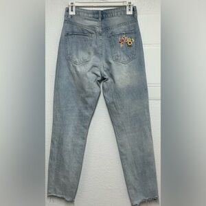91 Cotton On Straight Leg Blue Jeans with Distressed Floral Design