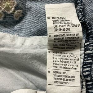 These Cotton On jeans showcase a straight leg silhouette in a classic blue hue, enhanced by artistic floral embroidery on the right leg. The distressed detailing adds a vintage touch, making them a stylish choice for casual outings. Offers are Welcome