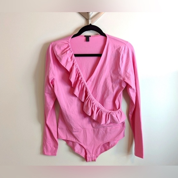 #91 J.Crew Pink Ruffle Wrap Style Bodysuit