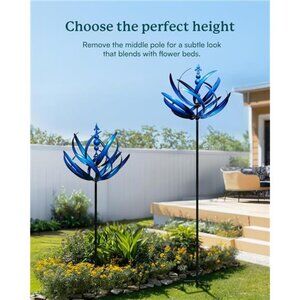🧿BEAUTIFUL LOTUS DESIGN: This towering Double-Tier metal wind spinners features a lovely blue finish and lotus design. Dual rotors spin independently and rotate 360 degrees. The kinetic yard wind spinners has thickened poles (diameter 22 mm) and stable metal stake with 3 prongs to ensure its firmly planted for windy days and against a snowy landscape