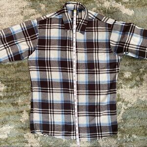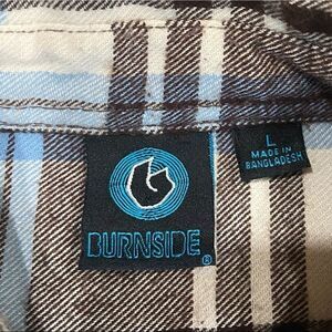 Burnside button down size Large perfect for yard work when it’s chilly there are a couple of bleach spots please see pictures. Very comfy and soft.