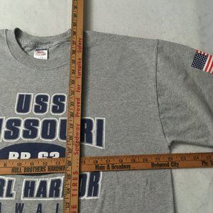 #92 Jerzees USS Missouri BB-63 Pearl Harbor Hawaii T-Shirt Men L Round Neck Gray