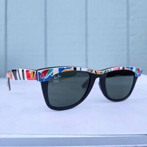 '92 Ray-ban B&L 1992 Barcelona Olympic Black Wayfarer Top Accent Sunglasses