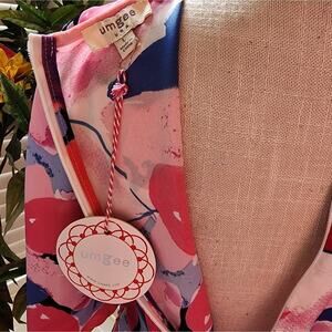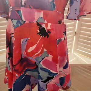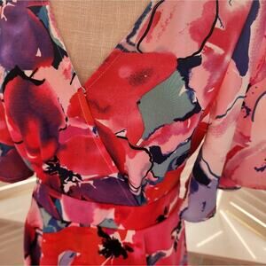 92 Umgee Floral Print Short Bell Sleeve V-Neck Romper with a Waist Tie