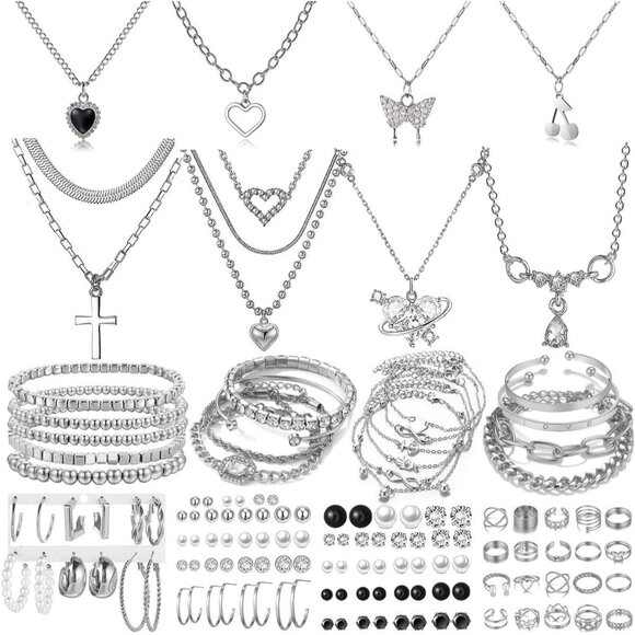 Dazzle with this huge 92-piece silver-plated jewelry set — perfect for dressing up or stacking for everyday glam! Total jewelry variety to match every mood and outfit.