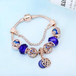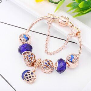 Design: The bracelet is adorned with vibrant blue crystal beads and delicate decorative pendants, creating a captivating and eye-catching look.