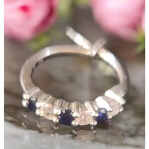 Add a touch of elegance with this beautiful 925 silver huggie earring! Featuring a stunning blue sapphire and sparkling faux diamonds, this single earring is perfect as a replacement for a lost earring or for those with a single piercing.