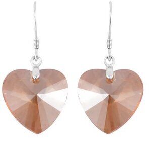 Sterling silver and Simulated Champagne Color Quartz Heart shaped Dangle Earrings