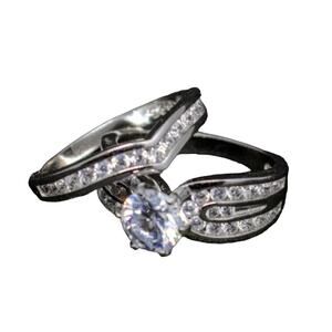 925 Cubic Zirconia Engagement Wedding Ring 2 Piece Set Size 8 NEW in Box
