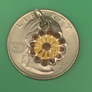 .925 Daisy Yellow Burnt Orange Sterling Silver Jewelry Charm #vintage #garden