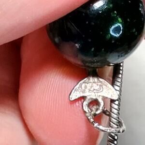 925 Dolphin Wrapped Around Green Glass Ball Charm 16 inches Necklace Retro.