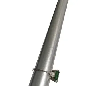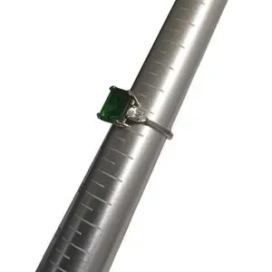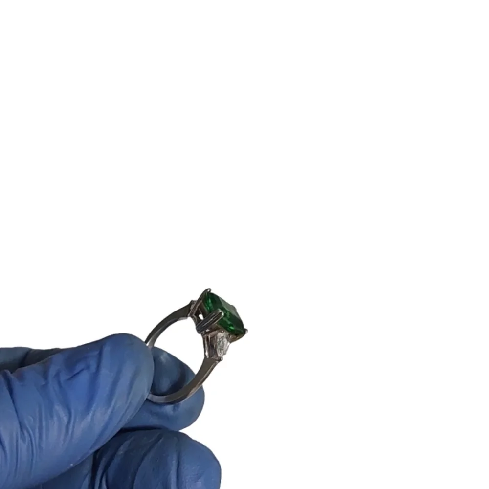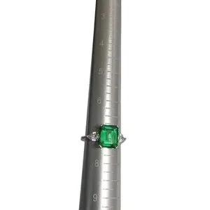 Square shaped emerald and pearl shaped diamond on each side in a 925 silver ring