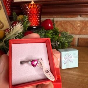 925 Elegant Ruby Silver Ring with Pink Heart Gemstone Luxury Box Gift Box