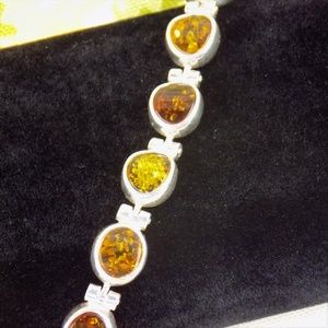 925 Gemstone BALTIC AMBER Link Bracelet 7"