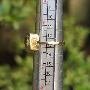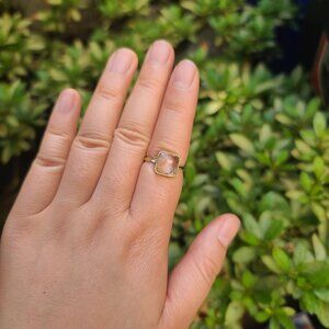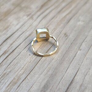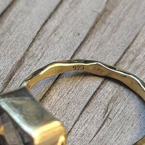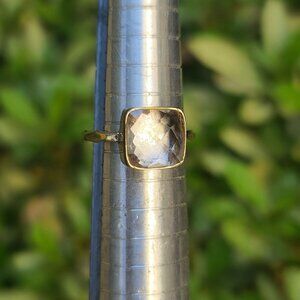 925 Gold Vermeil Sterling Silver Ring Clear Faceted Square Stone Modern, Sz 5.75