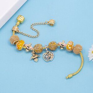 925 Infinite Charm Golden Honey Peak Themed Decorative Pendant Bracelet