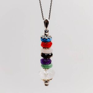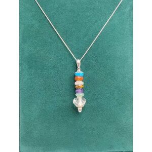 925 Italy 7 Faceted Stones Linear Drop Pendant Chakra Necklace Multicolor