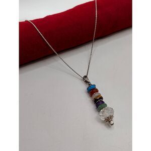 Sterling Silver Chain 7 Faceted Stones Linear Drop Pendant Chakra Necklace Multicolor