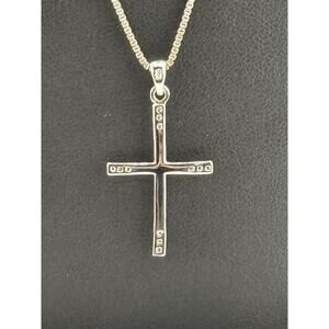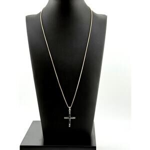 Beautiful sterling cross pendant and chain measuring approx. 18 inches. Cross pendant measures 1.25 inches by 0.75 inch. In very good condition. Stamped "Italy 925" A wonderful addition to your collection.