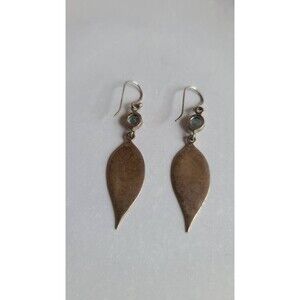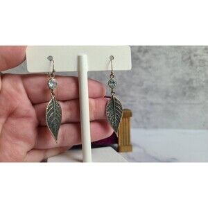 These are a vintage pair of 925 leaf shaped topaz dangling pierced earrings.